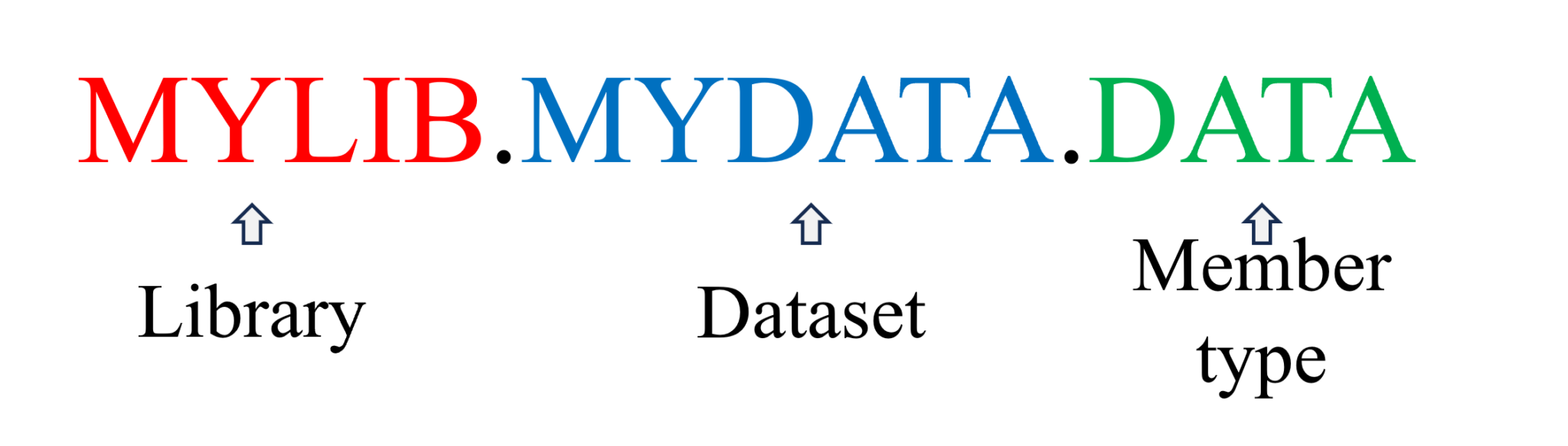 前面介紹了資料館與資料館,最後就來介紹它們的命名結構吧! SAS資料集是由3個命名層級構成的,分別是Library、Dataset、Member Type,中間以「點(DOT)」間隔