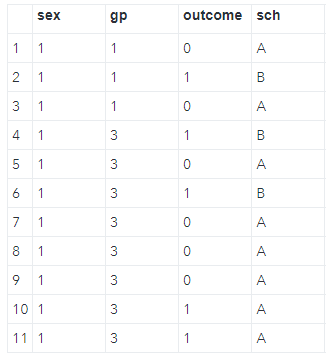 例如:有11位學生,我想用「sex」來記錄這群人的性別,這個sex就是變數,而在下方的「1」則是每位學生(觀察值)性別的紀錄