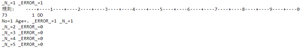 - 日誌中把所有的變數以及_Error_、_N_這2個自動變數都打印出來,並且是以「XX=」的形式出現