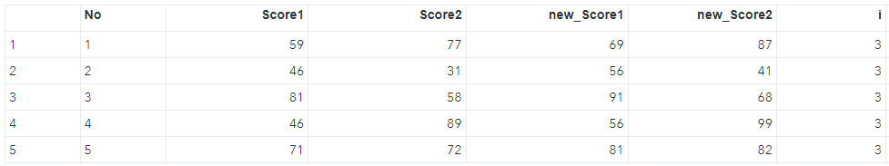 這段語法中,主要目的是建立2個矩陣,分別儲存原本的「Score1、Score2」數值變數以及新的數值變數「new_Score1、new_Score2」