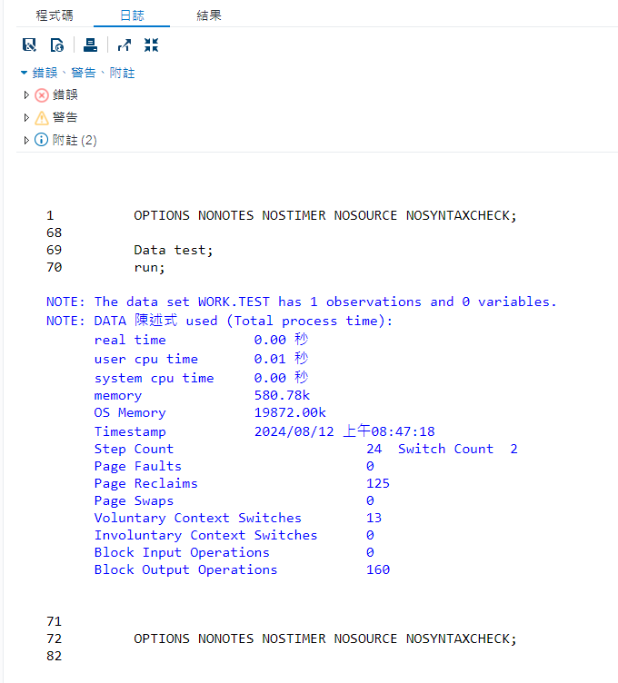 SAS內建能修改日誌的方式是透過調整全域的「選項(Option)」