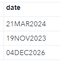 - 如果少了Informat敘述句,程式會執行失敗,因為SAS會認為input敘述句裡date宣告的是數值欄位、但讀到「2024-01-13」時卻是文字欄位